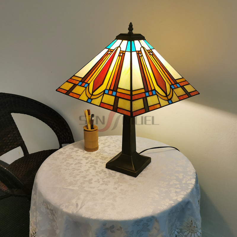 热销手工酒店床头灯家居装饰复古彩色玻璃台灯