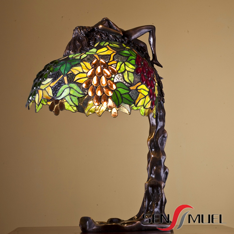 彩色玻璃纯铜底座台灯