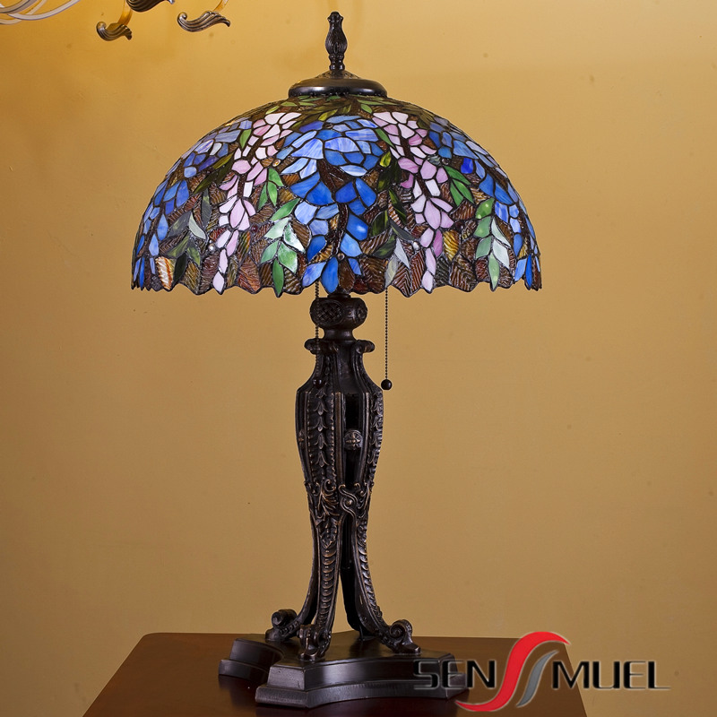 产品 蒂凡尼台灯 材质 彩色玻璃+合金底座 光源 E26/27 *2 个 (可调光白炽灯/不可调光LED灯泡) 电压 110~240V 尺寸 高55cm*直径41cm / 灯罩直径41cm 颜色 多色 包装 1个/彩盒 质保 2年质保